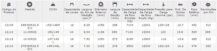 direcionais, livres e tração moderada de caminhões e ônibus, em